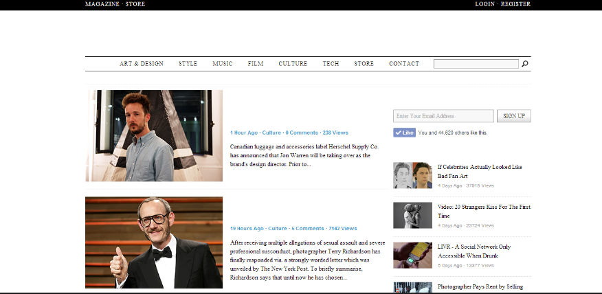 First thing on this page was the 'Dangerous Minds' title header. This was because it was the largest font and white on an black background which created a high contrast.